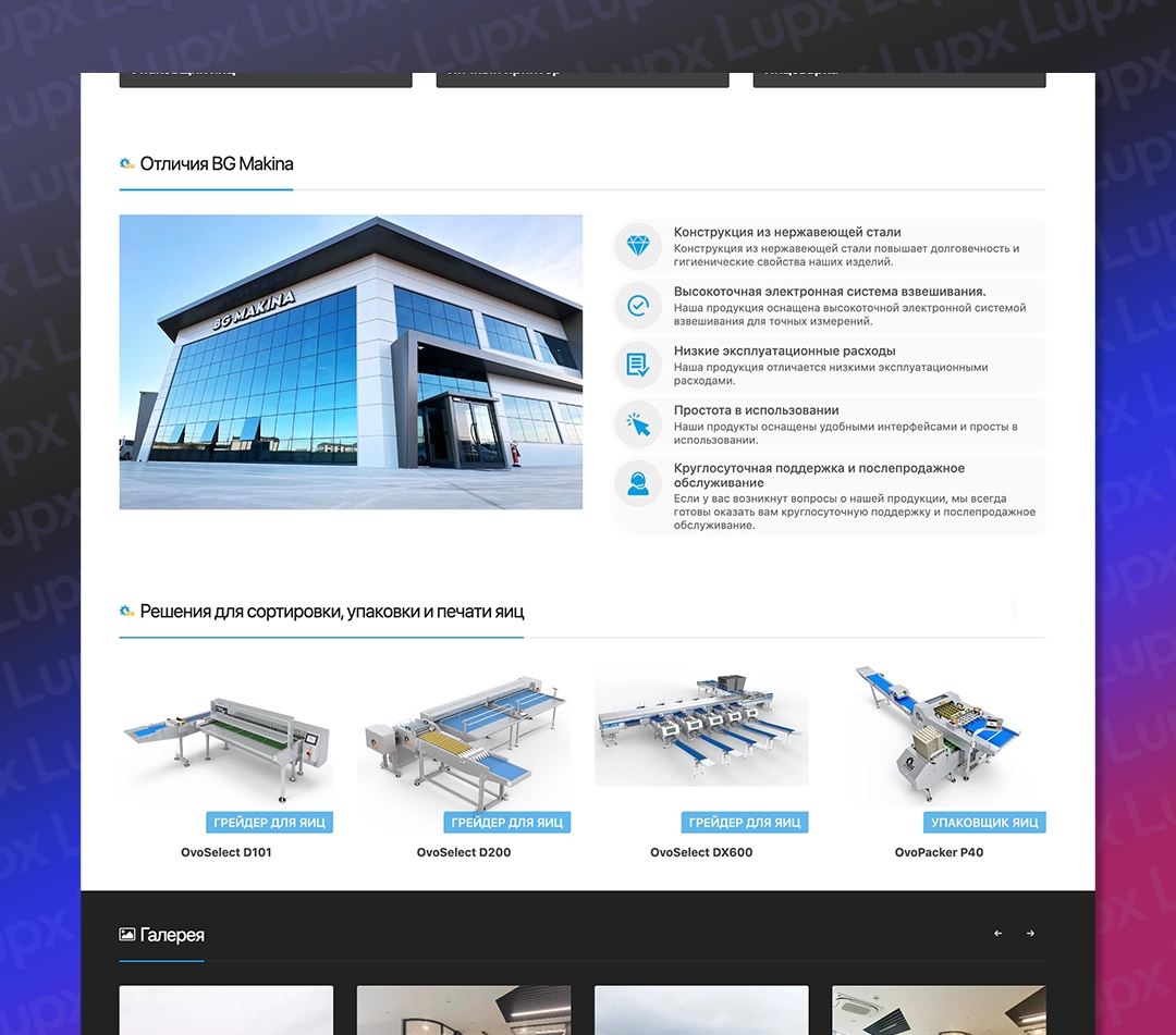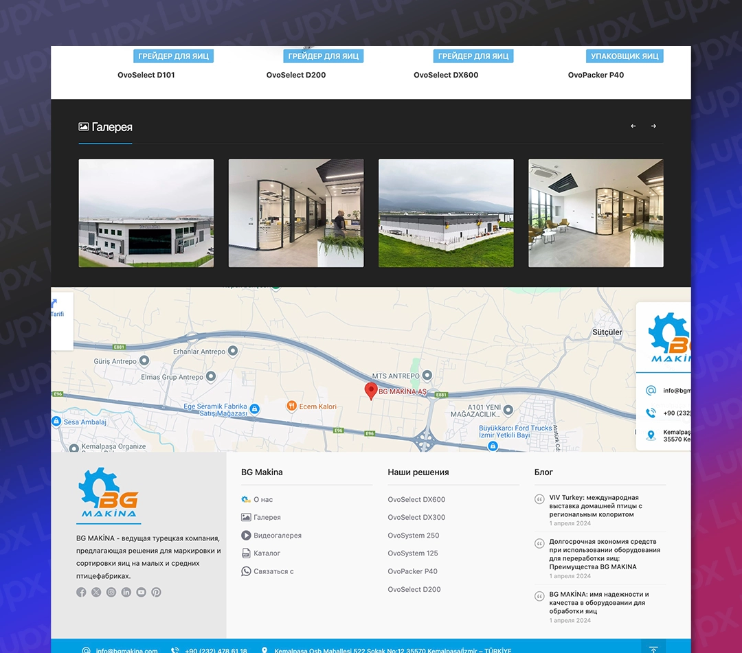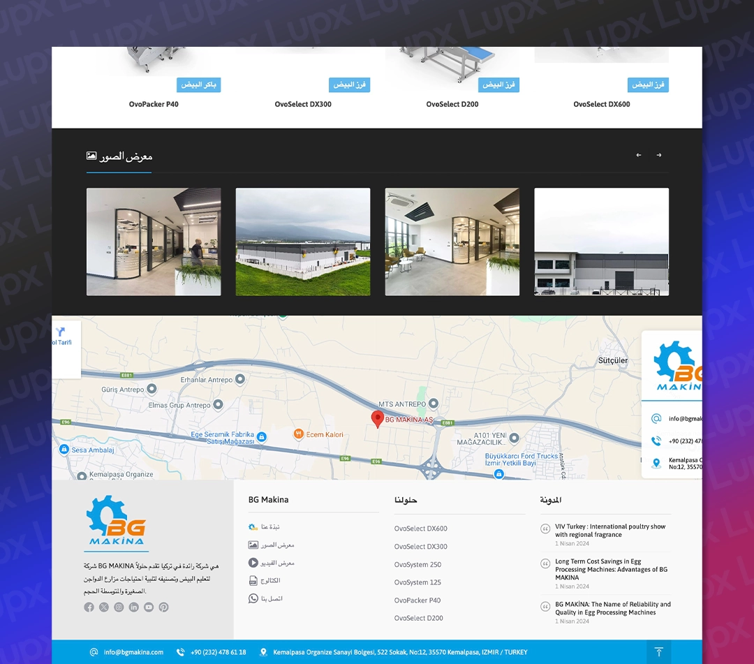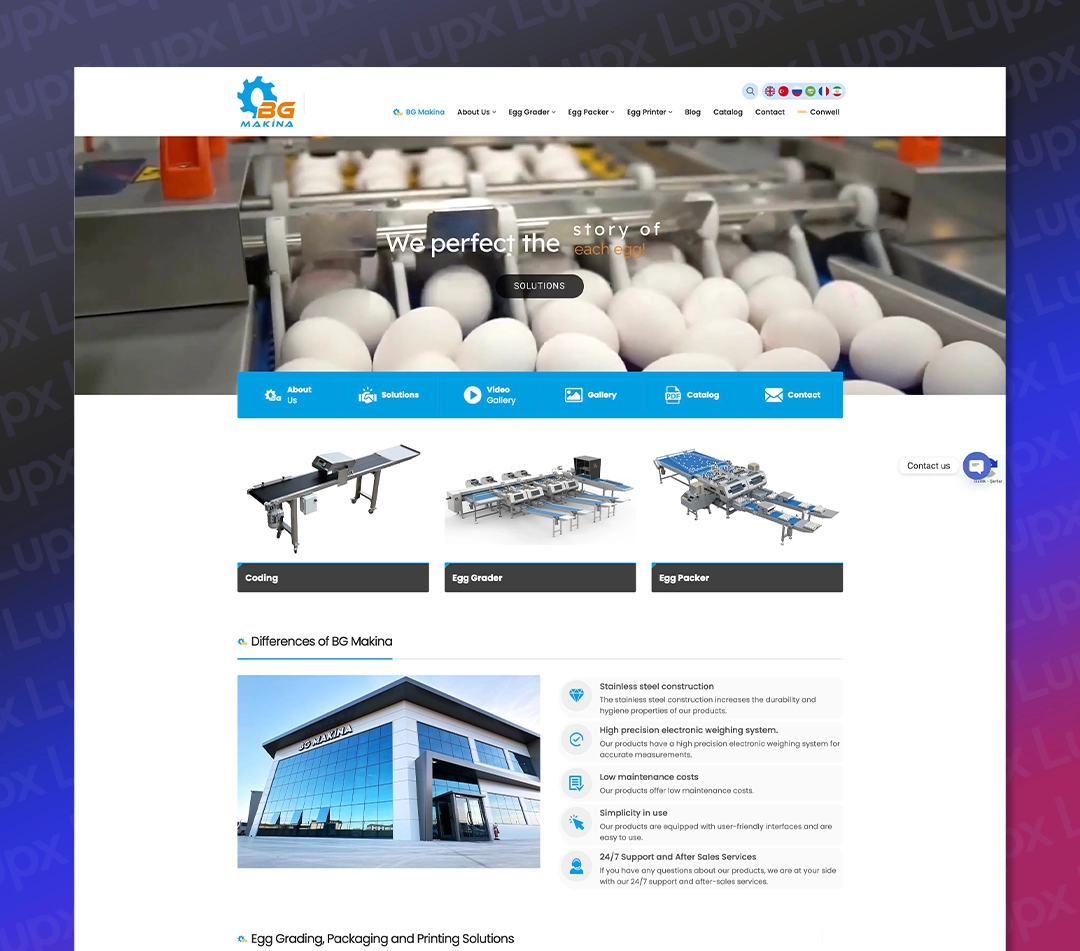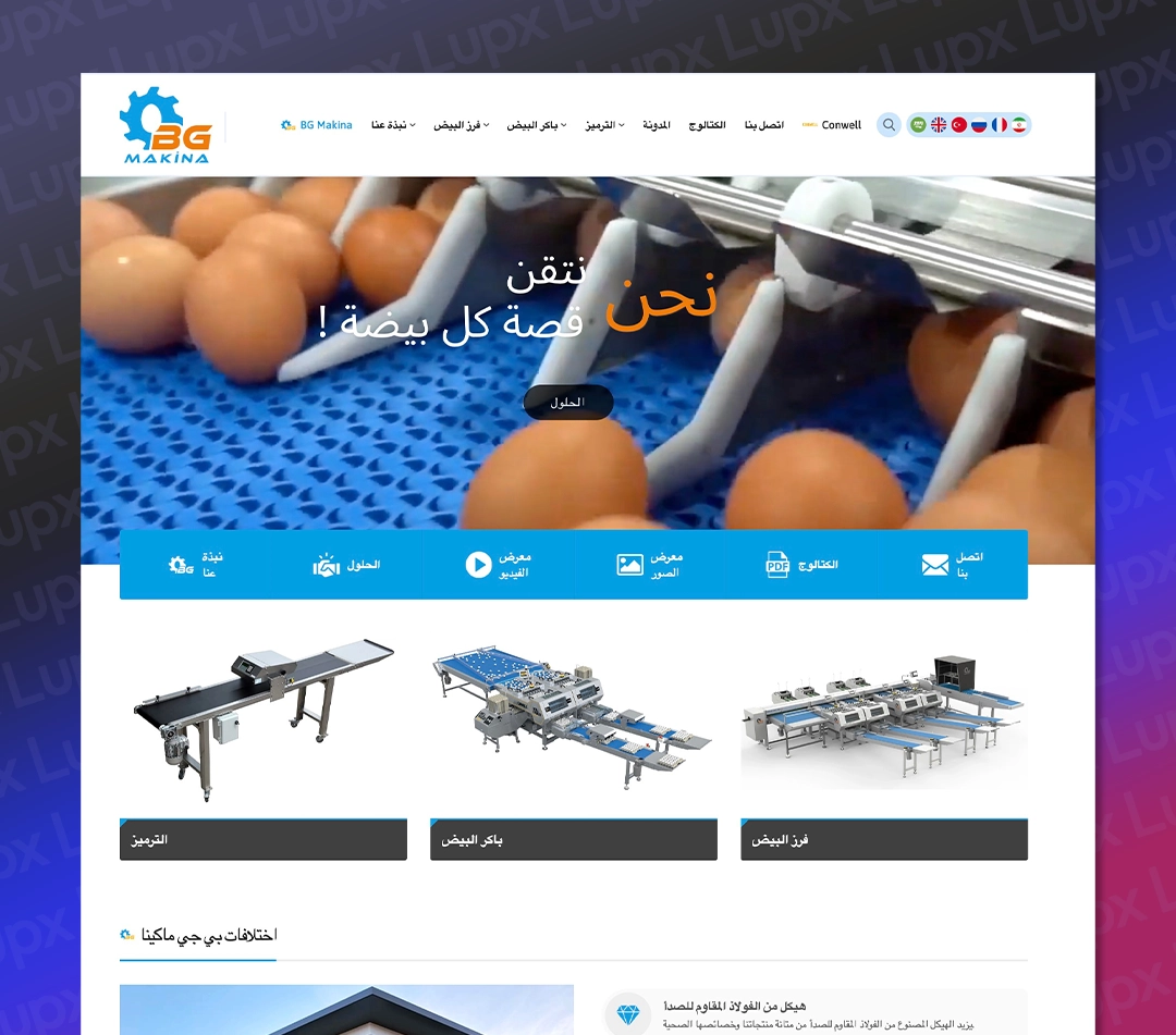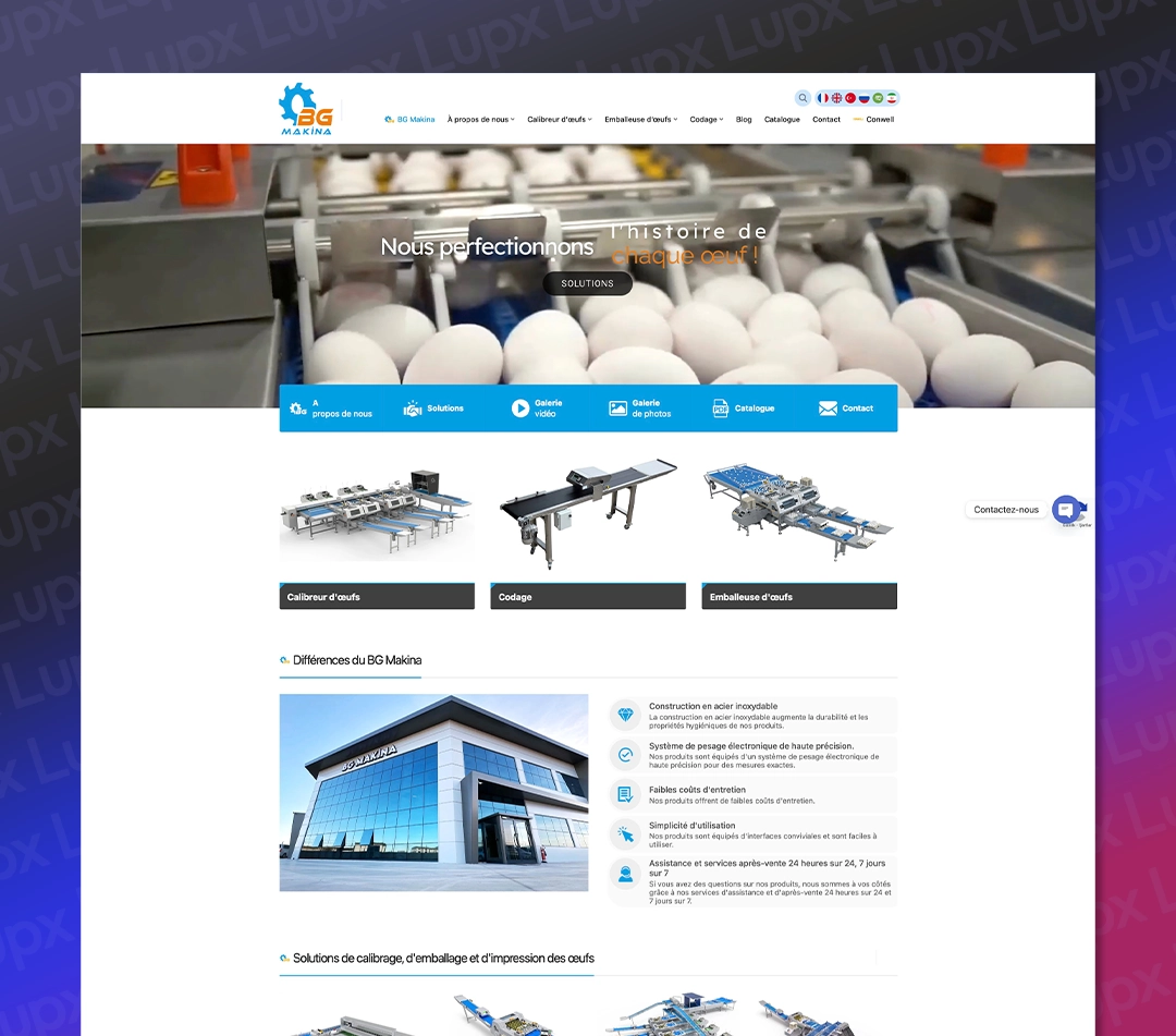 Lupx Dijital olarak, BG Makina’nın dijital dönüşüm sürecine destek vermek amacıyla, Türkçe, İngilizce, Arapça, Rusça, Farsça ve Fransızca dillerinde hizmet veren modern, kullanıcı dostu ve SEO uyumlu bir web sitesi tasarladık. Proje kapsamında, firmanın marka kimliğini global arenada en iyi şekilde yansıtacak estetik ve işlevsel bir yapı oluşturduk.