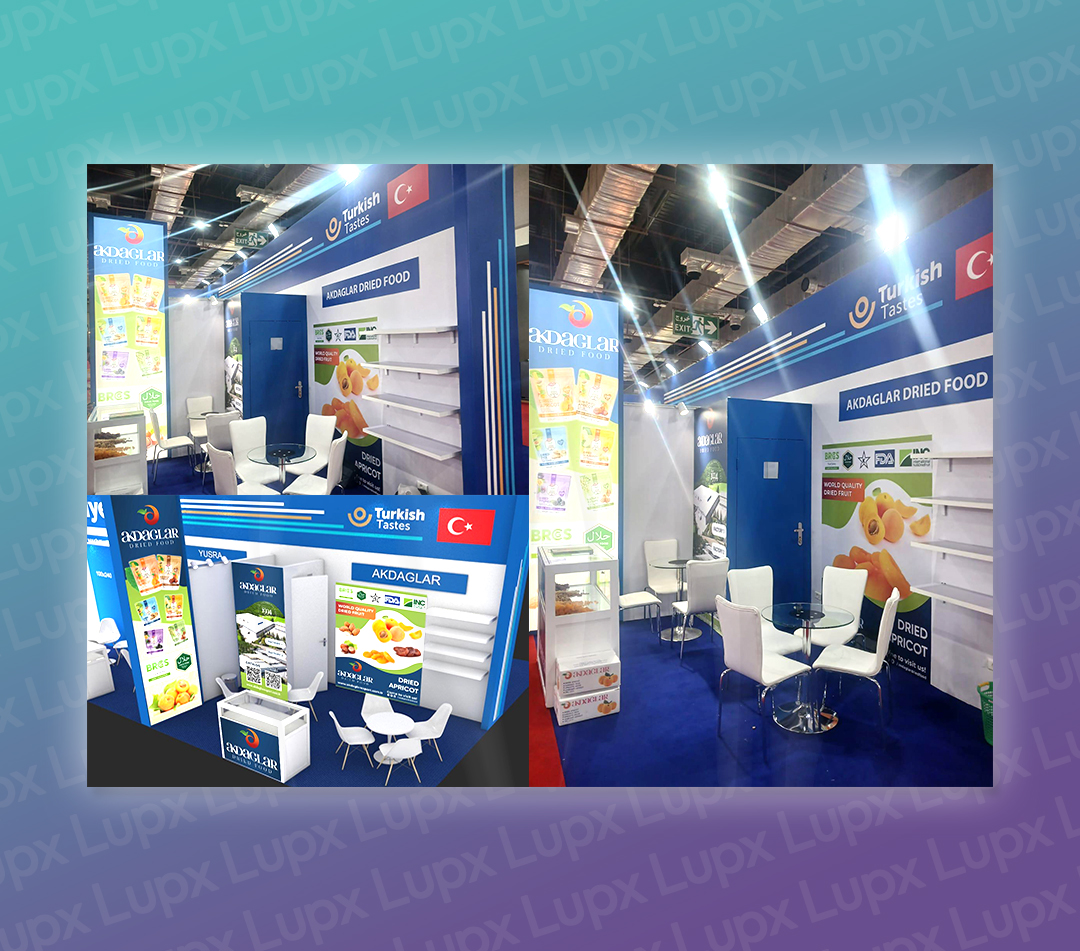 Markanın kurumsal kimliği doğrultusunda, özgün renk paleti ve modern çizgiler kullanılarak etkileyici bir stand tasarımı oluşturuldu.