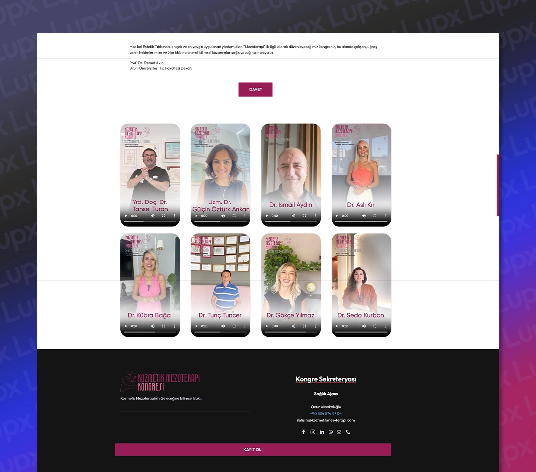 Lupx Dijital, dijital dönüşümde sunduğu yenilikçi çözümler ve kapsamlı teknik desteğiyle markaların ve etkinliklerin dijital dünyada fark yaratmasını sağlıyor. Kozmetik Mezoterapi Kongresi projesi, modern tasarım anlayışımız ve kullanıcı odaklı işlevselliğimizle, kongrenin dijital görünürlüğünü artırarak, katılımcılar ve sağlık sektöründeki profesyoneller arasında güçlü bir etkileşim oluşturmuştur.