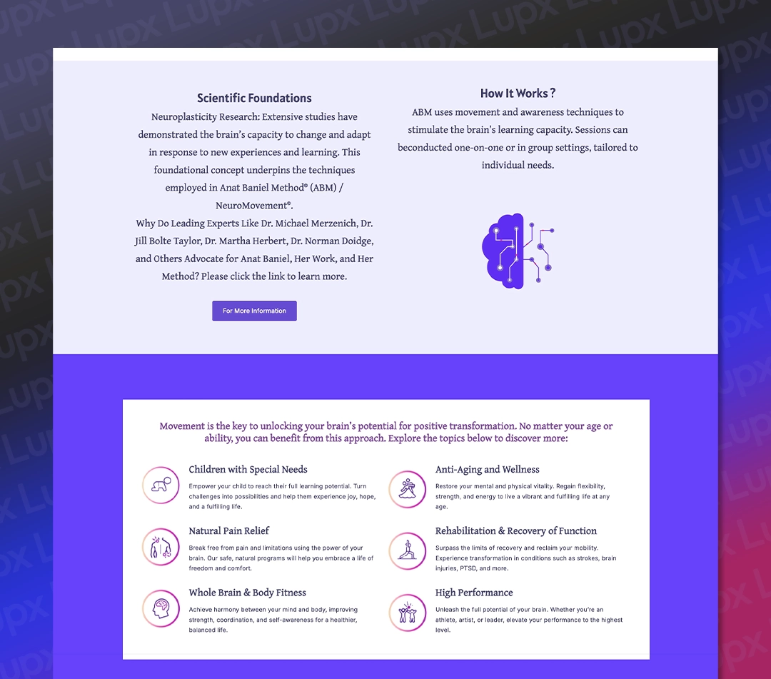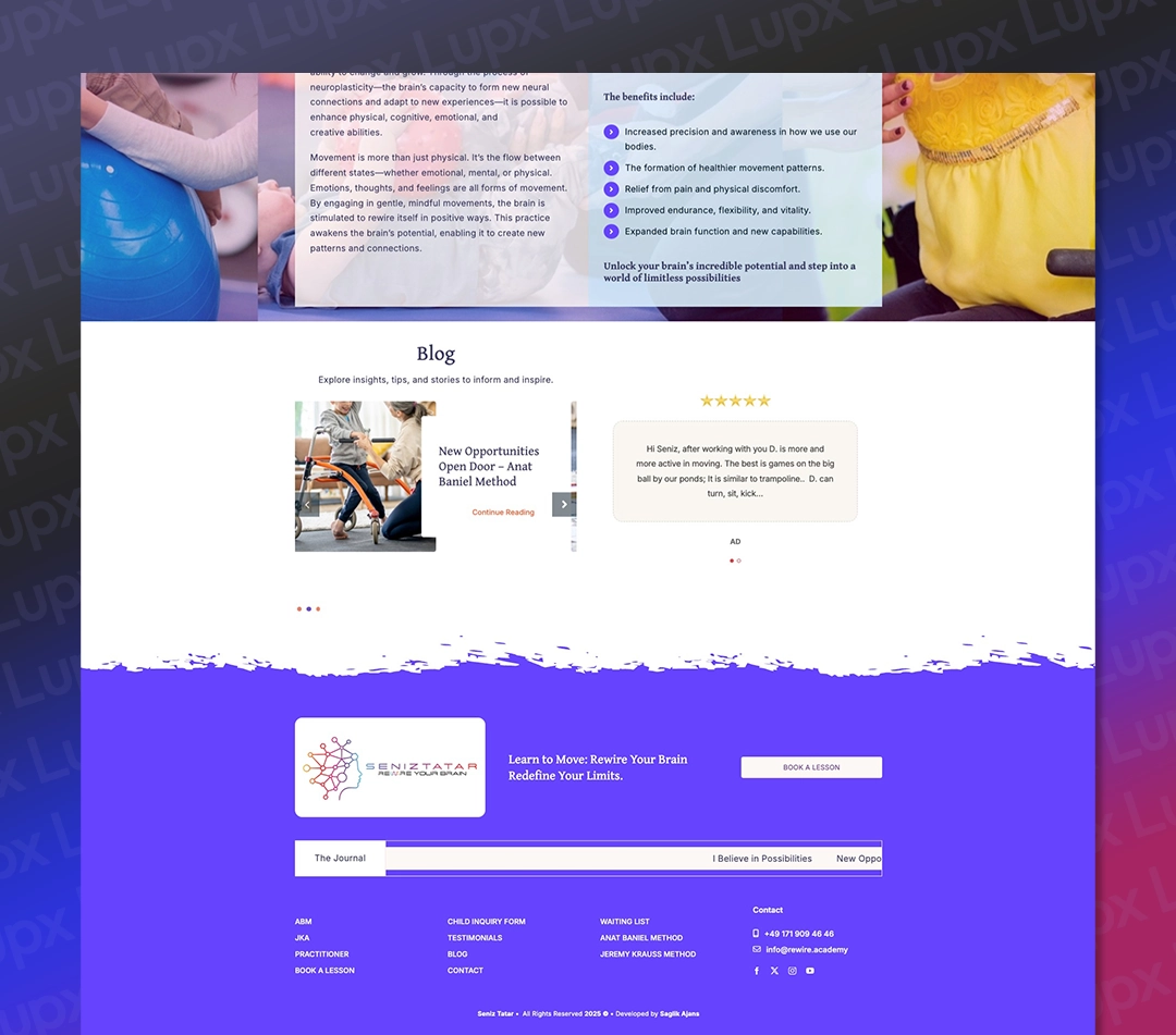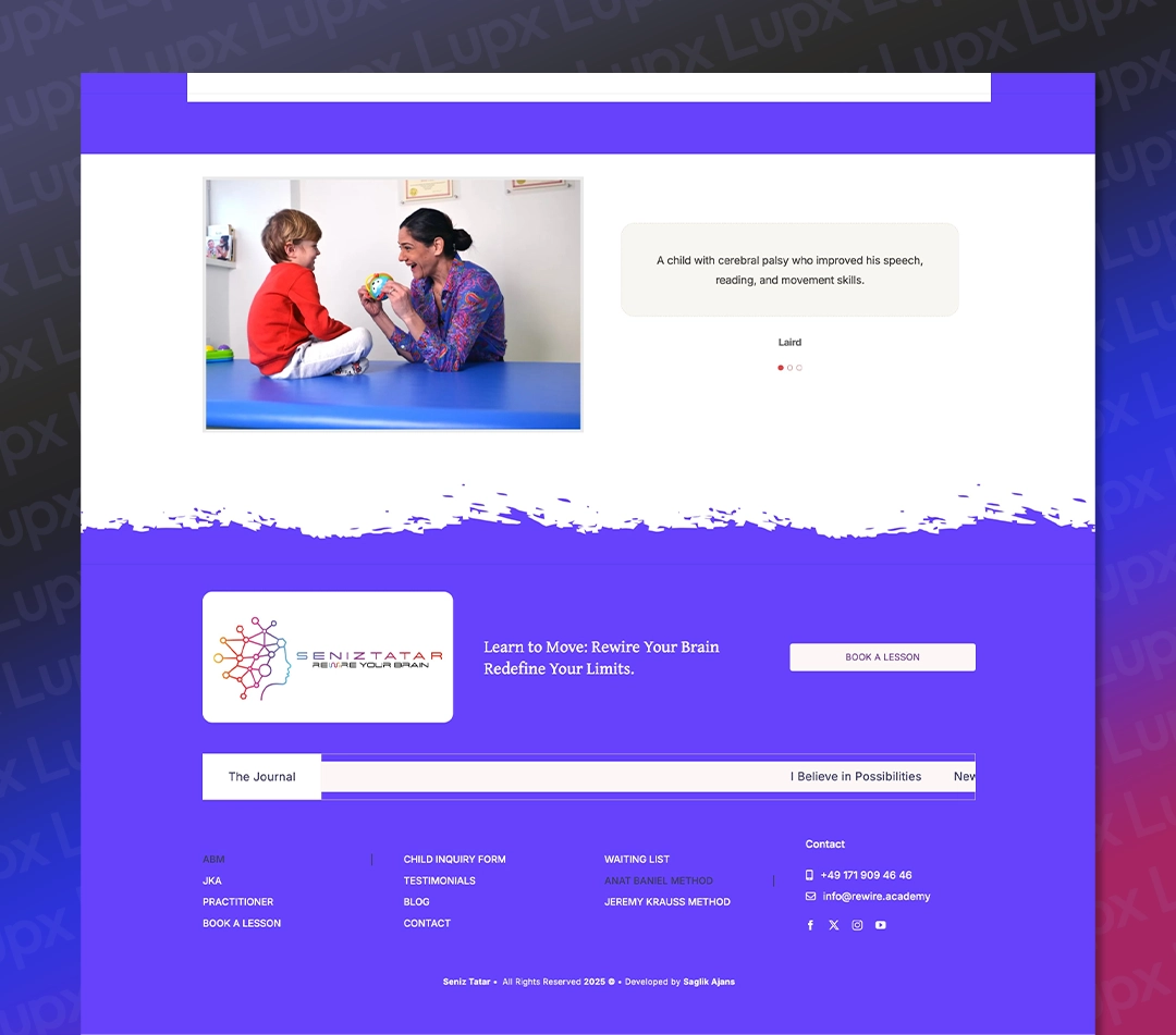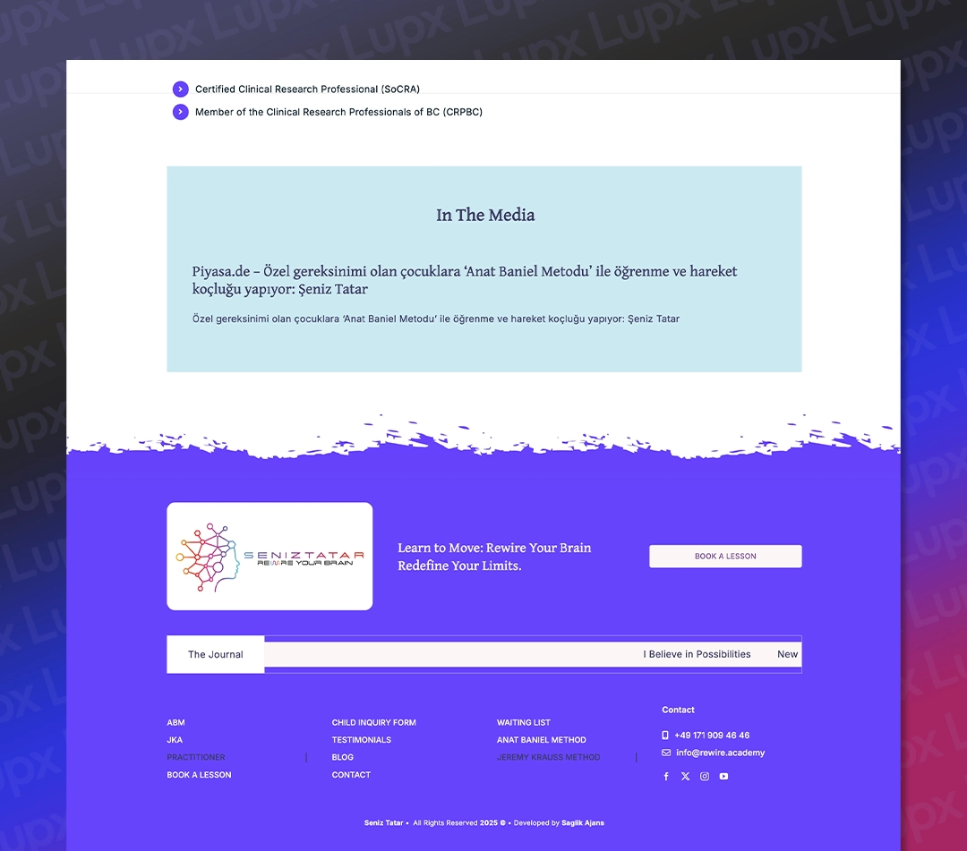 Lupx Dijital, dijital dönüşümde sunduğu yenilikçi çözümler ve kapsamlı teknik desteğiyle, markaların dijital dünyada fark yaratmasını sağlıyor. Fizyoterapi Almanya projesi, modern tasarım anlayışımız ve yaratıcı renk kullanımımız sayesinde, firmanın dijital görünürlüğünü artırarak uluslararası pazarda öne çıkmasına katkı sağlamıştır.